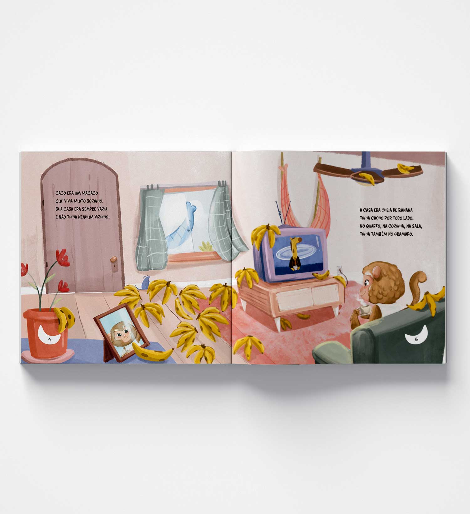 A narrativa rimada, leve e cheia de ritmo conduz os pequenos por um caminho de arrependimento, empatia e reconciliação. Ao refletir sobre sua atitude, Caco decide correr atrás do amigo, levando não só bananas, mas um pedido sincero de desculpas. O encontro final é um convite emocionante à generosidade, ao perdão e à construção de laços verdadeiros.